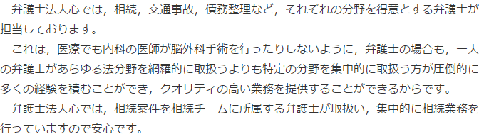 特に相続は、様々な分野が絡む問題が多いため、相続について取り扱っていても、相続の特定の分野は取り扱ったことがないなどという専門家も多く、相続の経験が多い専門家とそうでない専門家とで能力に大きく開きが出やすい分野とも言えます。