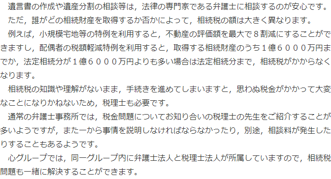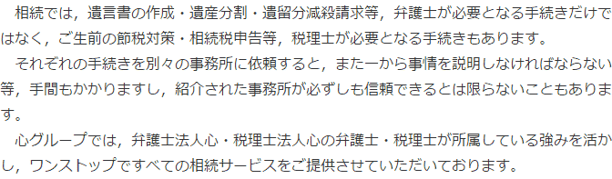 一つの「相続」の問題であっても、その中には様々な分野の問題を多く含んでいることがありますので、そうした問題を一括して引き受けてくれるならば、「相続に強い専門家」として心強いでしょう。