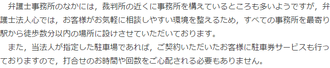 事務所の紹介をしている資料にどのような分野を取り扱っているかが記載されていることが多いので、1のような登記、税金、紛争といった相続に関連する分野をしっかりと取り扱っているかを確認することは参考になります。